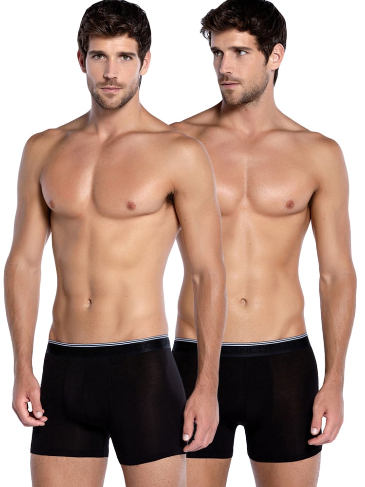 Ein 2er-Pack Boxershorts von Punto Blanco, hergestellt aus Bambus-Viskose, die diese Boxershorts schön kühl macht und Feuchtigkeit perfekt absorbiert und ableitet, um Kleben und Schwitzen zu verhindern. Die Boxershorts haben einen weichen, elastischen Bund mit dem Punto Blanco-Logo in dezentem Relief. Die Boxershorts sind in verschiedenen Farbkombinationen erhältlich.