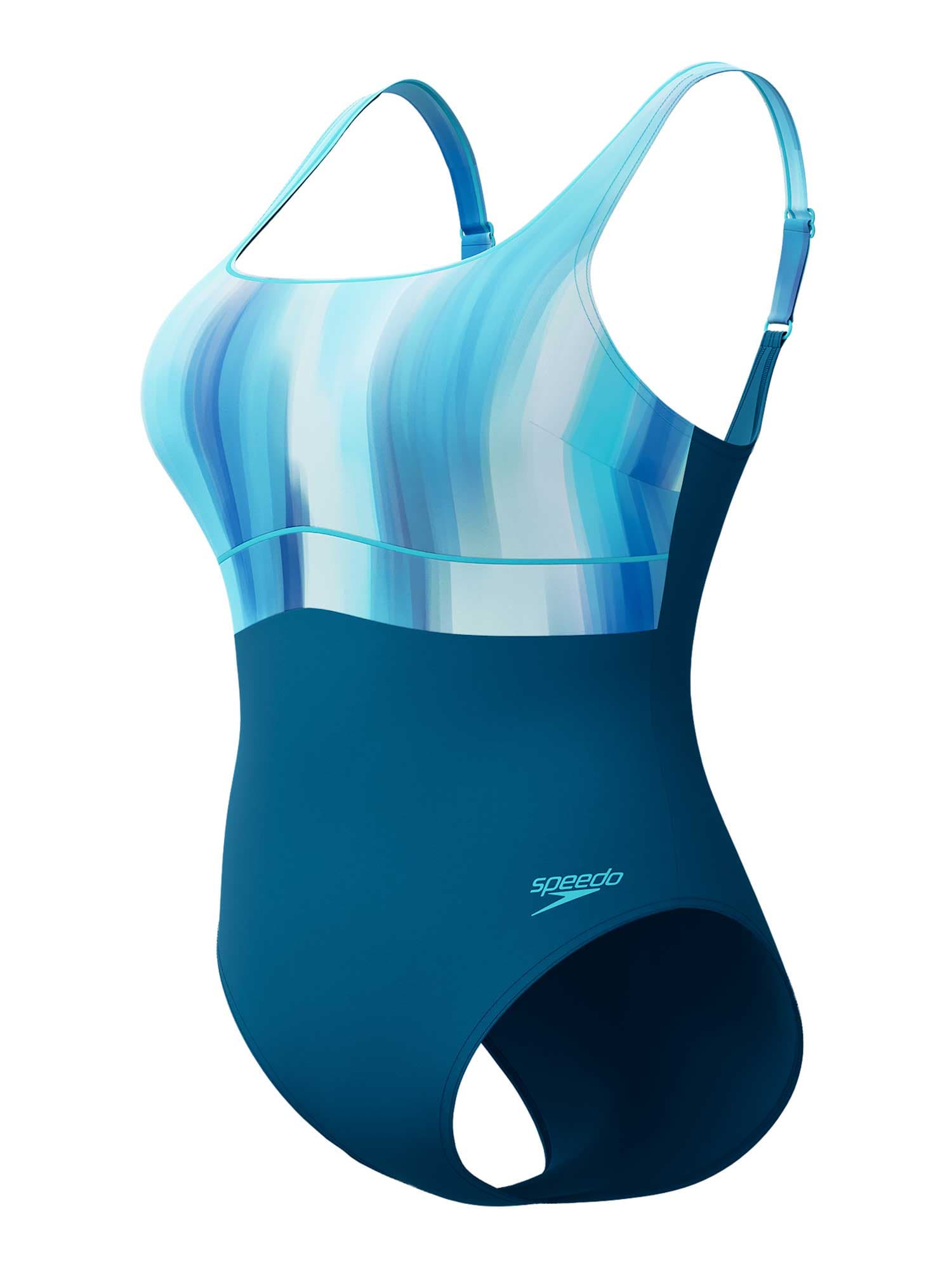 De Contour Eclipse is een sculpture badpak uit de Shaping collectie van Speedo en de vervanger van de countourlustre. De sculpture stof sluit perfect aan op het lichaam en accentueert de vrouwelijke rondingen voor een mooi gestroomlijnd figuur, zonder in te leveren op draagcomfort. Het badpak biedt een medium borstondersteuning verweven in de stof en heeft een all-over shaping effect. De verstelbare schouderbandjes zorgen ervoor dat je het badpak perfect op maat kunt brengen. De Contoure Eclipse is uitgevoerd met een rechte neklijn die nog voldoende ruimte biedt voor de dame die boven iets breder is of een grotere cup nodig heeft. De sculpture stof gaat tot 2x langer mee dan standaard badkleding wanneer je in chloor zwemt, waardoor je langer van je badpak kunt genieten.