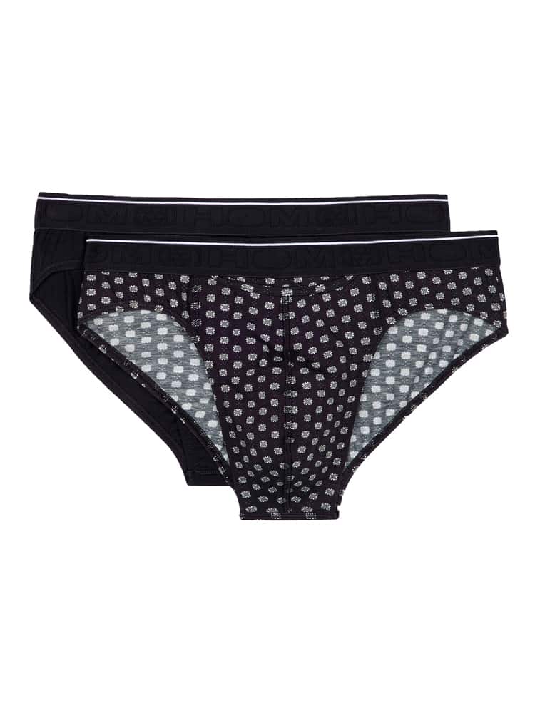 2 Mini Briefs in een voordelige 2-pack uitgevoerd met de horizontale gulp waar HOM bekend om staat, voor extra gemak en comfort. Deze HOM HO1 boxers zijn onderdeel van BOXERLINES serie en gemaakt van gekamd stretch katoen. Deze multi-pack bestaat uit een slip in de kleur zwart en een mini brief met een speelse print.. Deze heren slips zijn geschikt voor dagelijks gebruik.