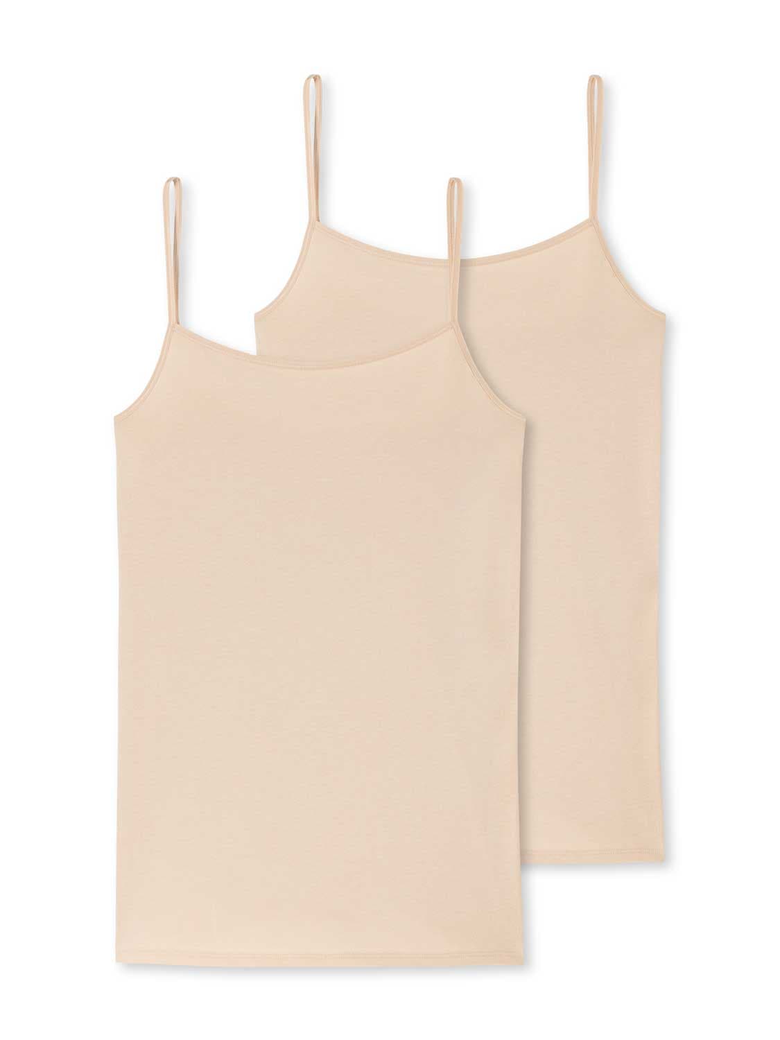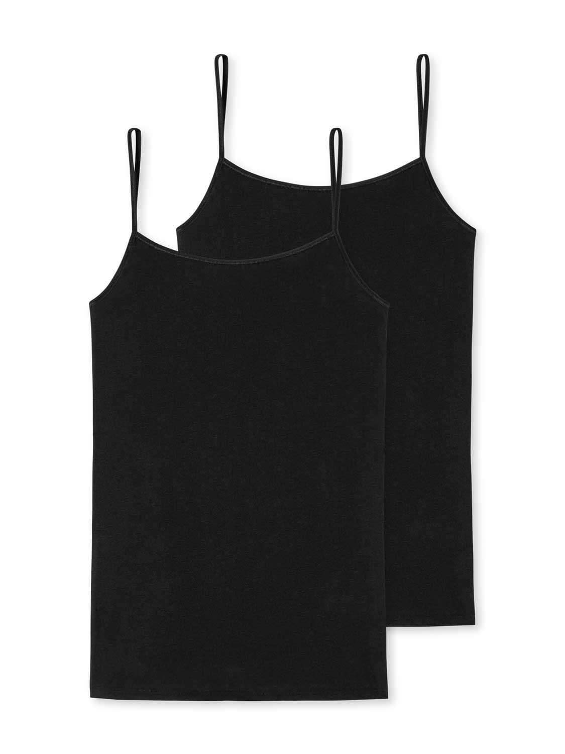 Een voordeelpack met 2 spaghettitops voor dames uit de populaire Schiesser "95/5" serie. De spaghettitops zijn gemaakt van zijdezacht biologisch katoen gemixt met 5% elastaan en gebreiden in een jersey, voor een optimale pasvorm en het beste draagcomfort. Door de speciale productie van Schiesser is het elastaan in de stof zodanig beschermd dat je de tops tot 60 graden kunt wassen zonder dat ze hun pasvorm verliezen. Met deze spaghettitops koop je de kwaliteit die je van Schiesser mag verwachten.