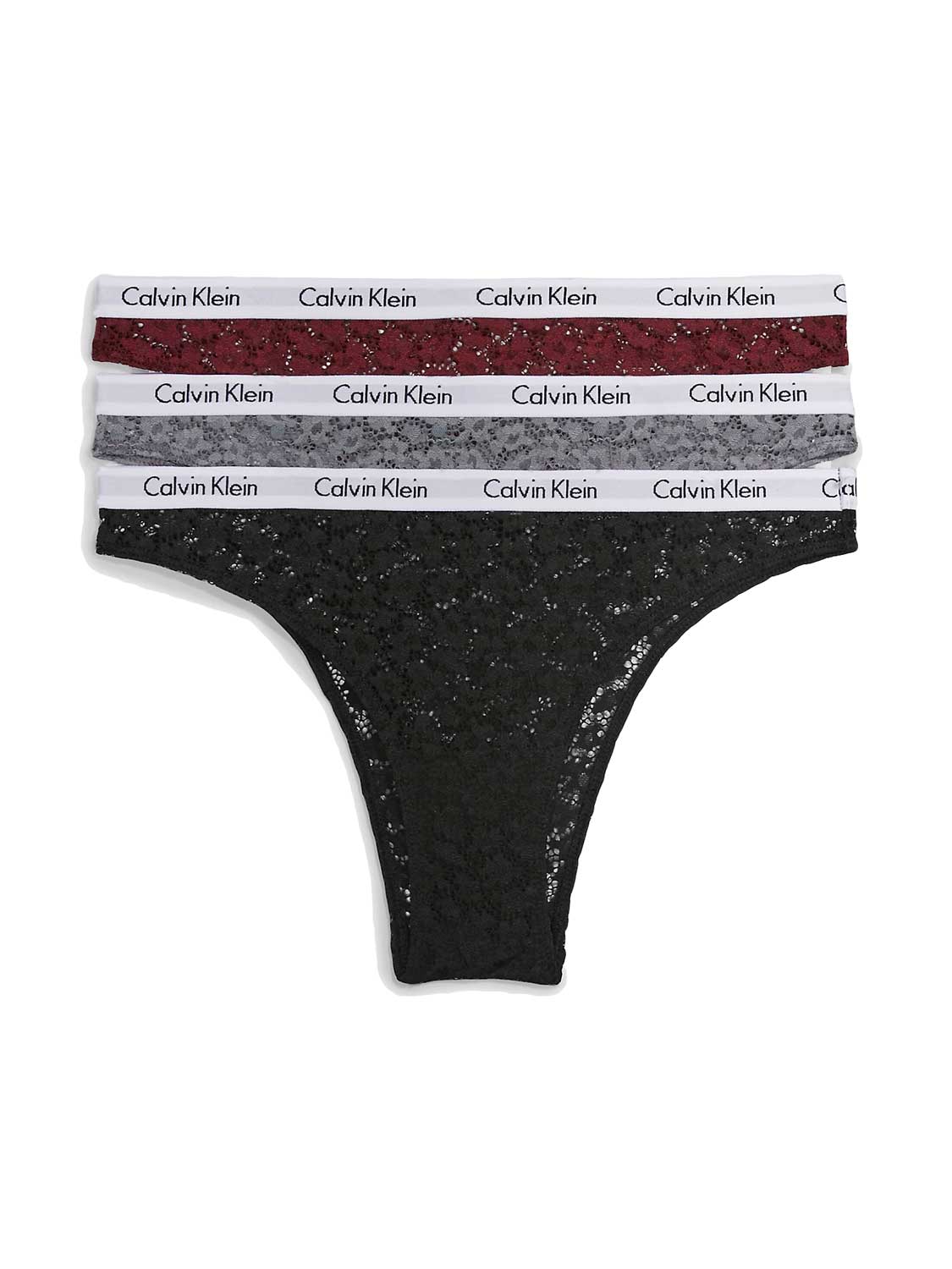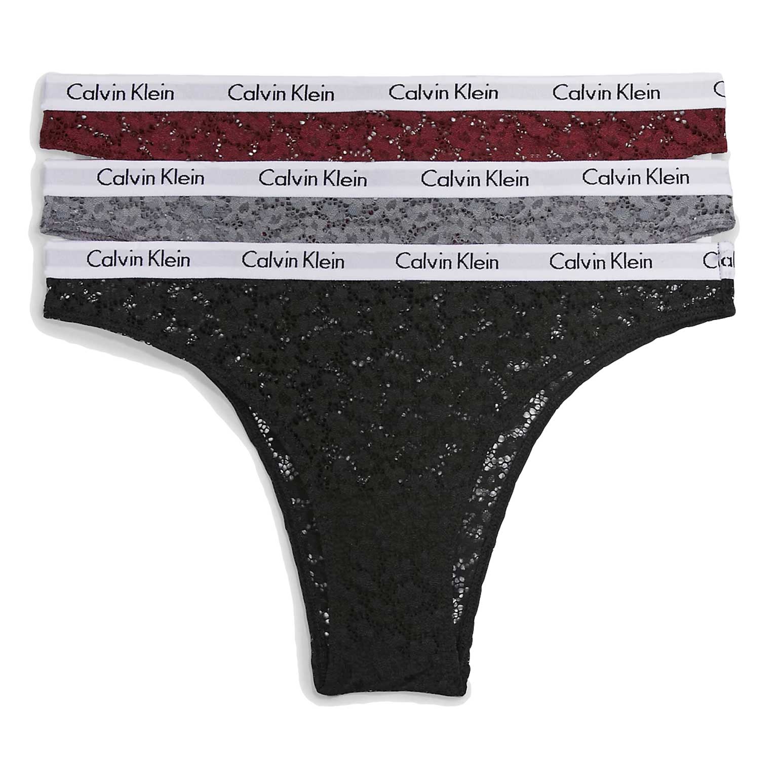 Drie brazilian slips gemaakt van kant met een witte Calvin Klein heupband in een voordeelpak. De slips zijn gemaakt van een comfortabel nylon wat mooi op de huid ligt voor een sierlijk effect. De brazilians zijn uitgevoerd in twee kleurcombinaties