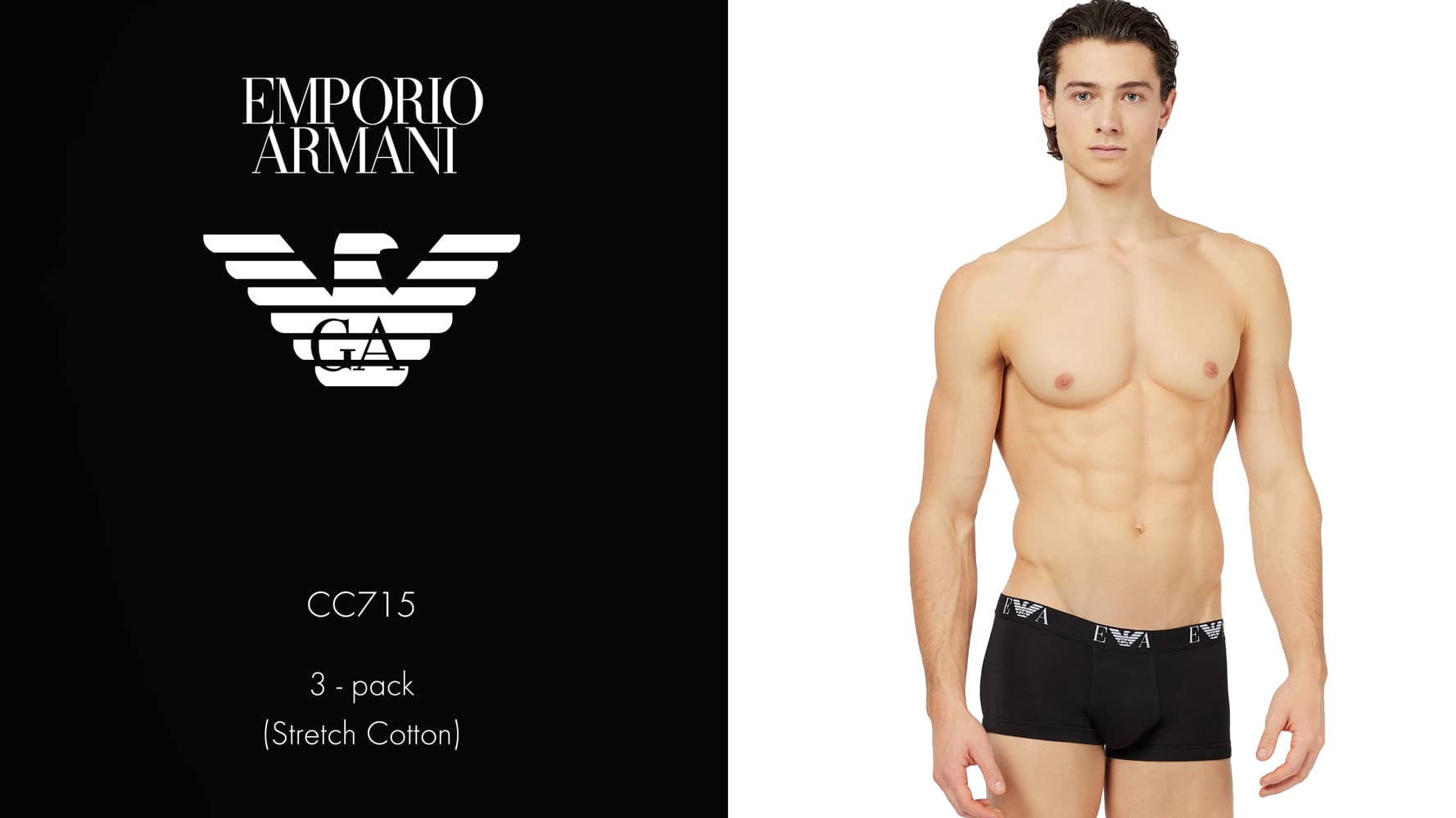 Voordelige 3 pack van Emporio Armani, met 3 trunks uit de CC715 Essential serie. De korte boxers zijn gemaakt van stretch katoen en uitgevoerd. De boxers zijn geschikt voor alledaags gebruik en hebben een heupband met het EA logo met de bekende Eagle monogram.