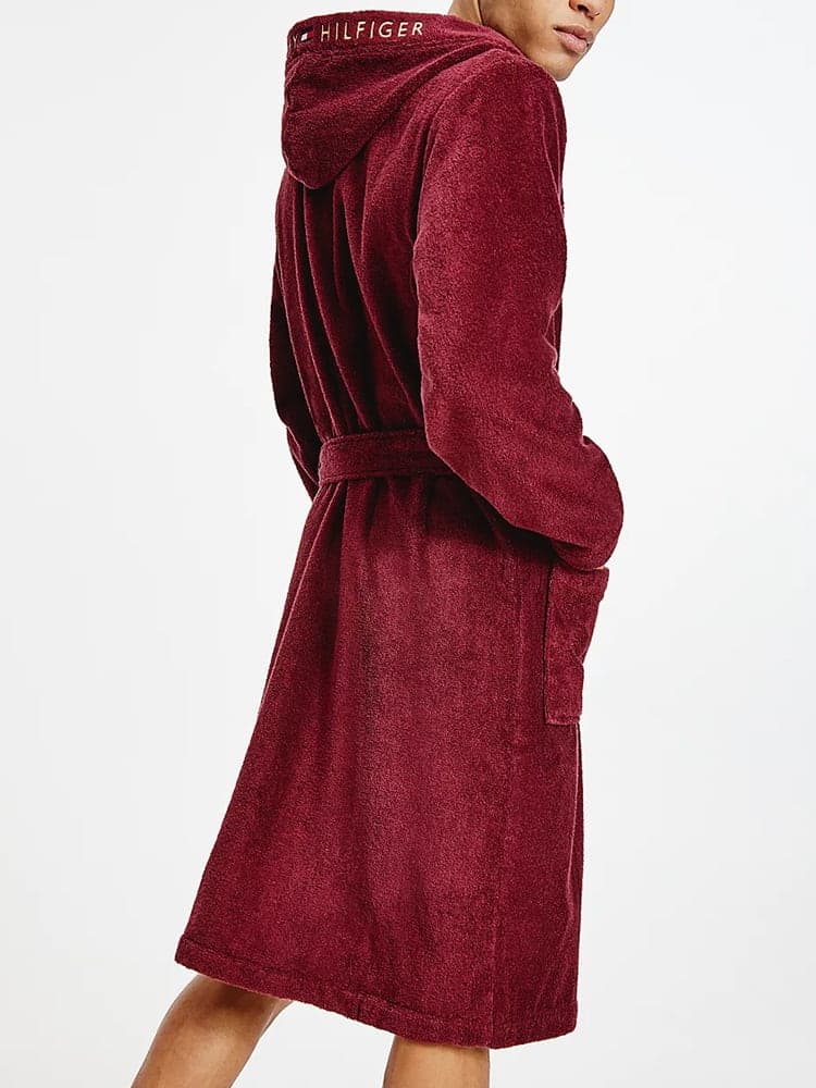 Luxe badjas van strikceintuur en Tommy Hilfiger logo op de capuchon. Met deze badjas kun je comfortabel de dag beginnen of een dag in de sauna doorbrengen. De badjas is gemaakt van 100% biologisch katoen waardoor deze uitstekend vocht opneemt.