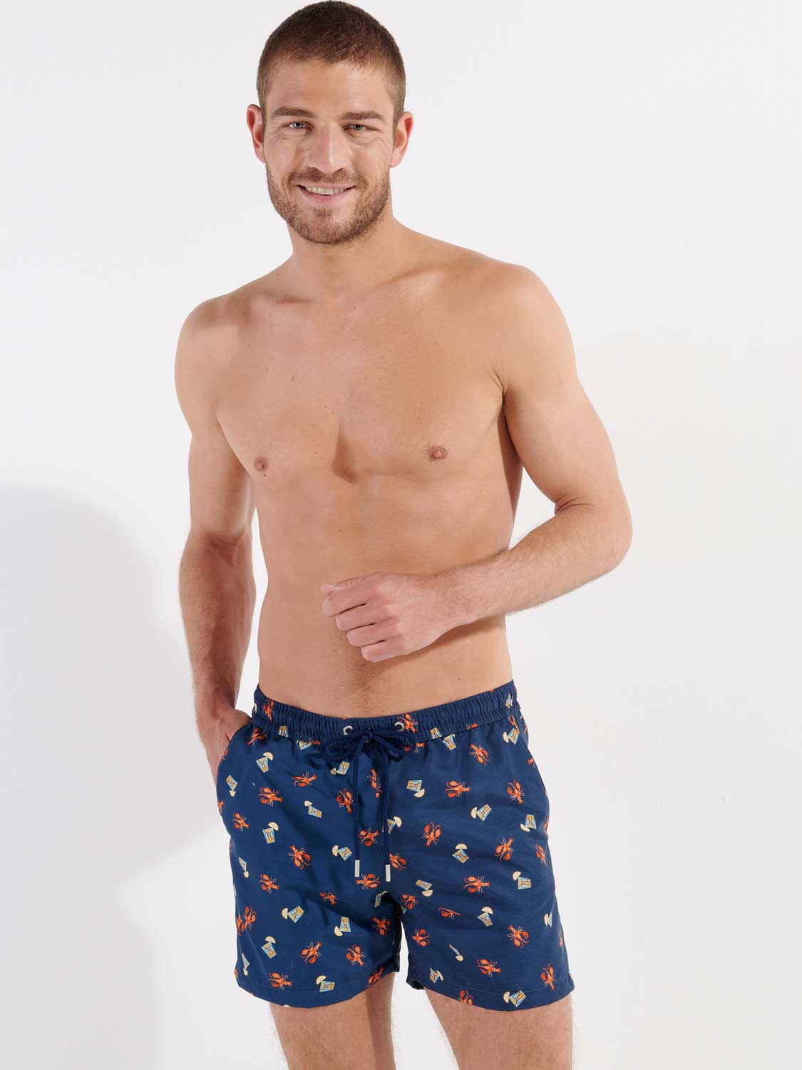 De Beach Club - Beach Boxer heeft een smakelijke print met cocktails en kreeften op een marine blauwe achtergrond. Met zakken aan de linker en rechterzijde en een klein kontzakje is deze zwembroek helemaal compleet. De binnenbroek zorgt voor extra comfort en ondersteuning en is gemaakt van polyester zodat het zwemshort snel droogt na een frisse duik. Het trekkoord in de heupband zorgt ervoor dat je de Beach Boxer perfect op maat kunt brengen.