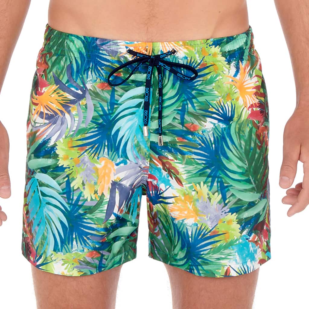 De Palms - Beach Boxer is gemaakt van sneldrogend materiaal en uitgevoerd met een kleurrijke palm blader print. Het zwemshort heeft twee zijzakken en een binnenbroek voor een comfortabele ondersteuning. Doordat het zwemshort getailleerd is op het been, heeft deze een pasvorm die mooi aansluit op het lichaam. De elastische tailleband voelt zacht aan en heeft een trekkoord zodat deze goed rondom afsluit.