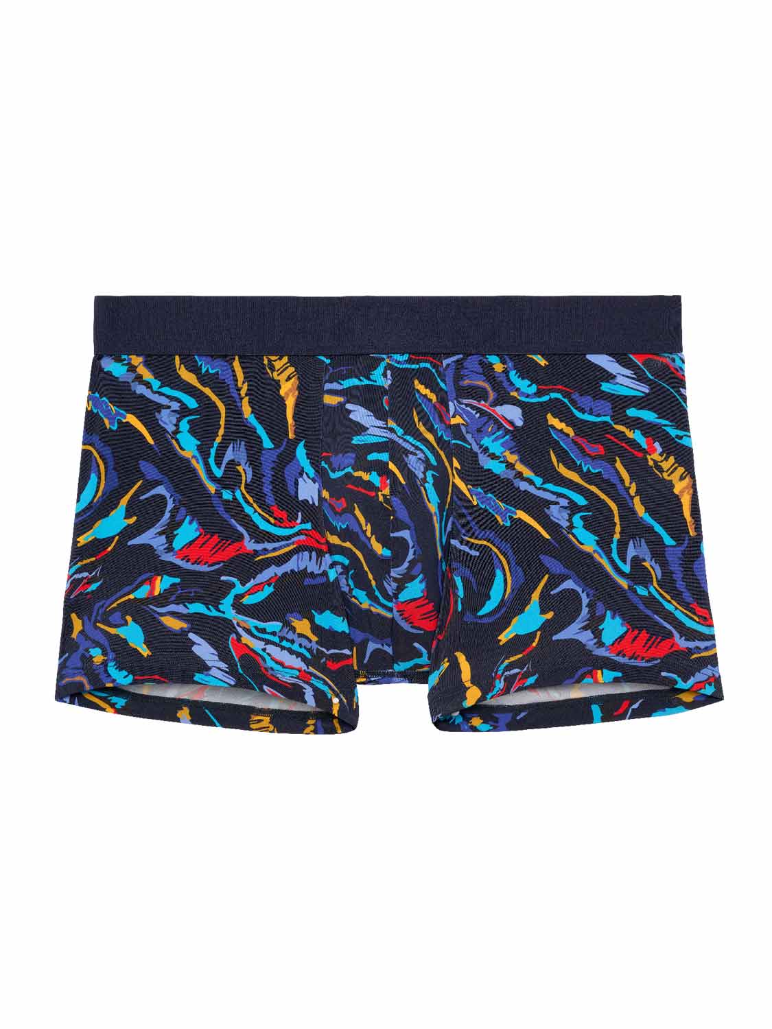 De Bali - Boxer Briefs is gemaakt van een comfortabele microfiber. Deze heren boxer heeft een bijzondere psychadelische kleurrijke wave print op een op een donker blauwe achtergrond. De Bali heeft een elastische heupband gemaakt van katoen met daarop het HOM Logo in ton sur ton.
