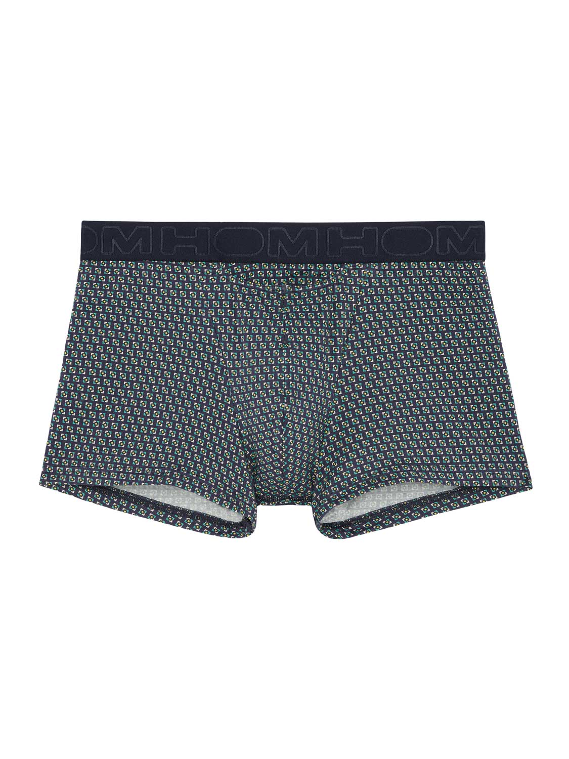 De Valere - HO1 Boxer Briefs, gemaakt van katoenmodal en uitgevoerd met de 'horizontale opening', de gulp waar HOM bekend om staat. De boxer is uitgevoerd met een eigentijdse geometrische print met groen gele tinten op een marine blauwe achtergrond. Katoenmodal heeft een natuurlijke oorsprong, voelt zacht aan en zorgt voor een pasvorm die goed aansluit op het lichaam. De Mayron boxer is daardoor geschikt voor iedere man die graag natuurlijke stoffen draagt. Daarnaast heeft katoenmodal goede absorberende en ademende eigenschappen, waardoor je veel minder snel warme klamme plekken krijgt in je ondergoed. Bij normaal gebruik is de stof goed bestand tegen krimpen en slijtage door wrijving. De Valere heeft een elastische heupband met daarop het HOM Logo.