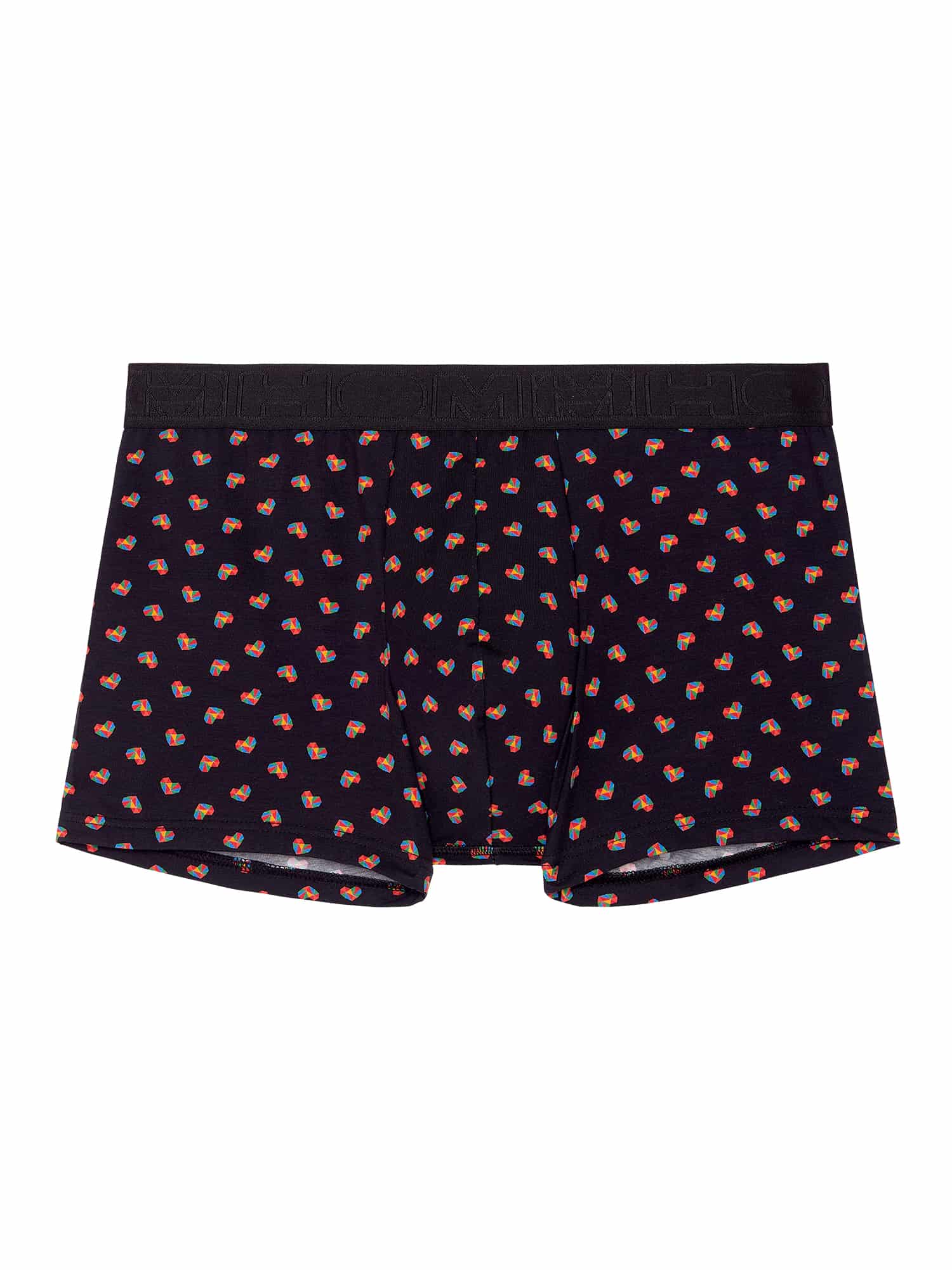 De Romeo - Boxer Brief draagt je een warm hart toe. De boxer is gemaakt van een zachte comfortabele katoen modal en uitgevoerd met een print met kleurrijke hartjes. De Romeo is geschikt voor iedere man die graag natuurlijke stoffen draagt. Door de combinatie van modal met katoen heeft deze heren boxer bijzonder goede absorberende en ademende eigenschappen en is de stof bij normaal gebruik bestendig tegen krimpen en wrijving. De Romeo heeft een comfortabele zachte heupband uitgevoerd met het HOM logo.