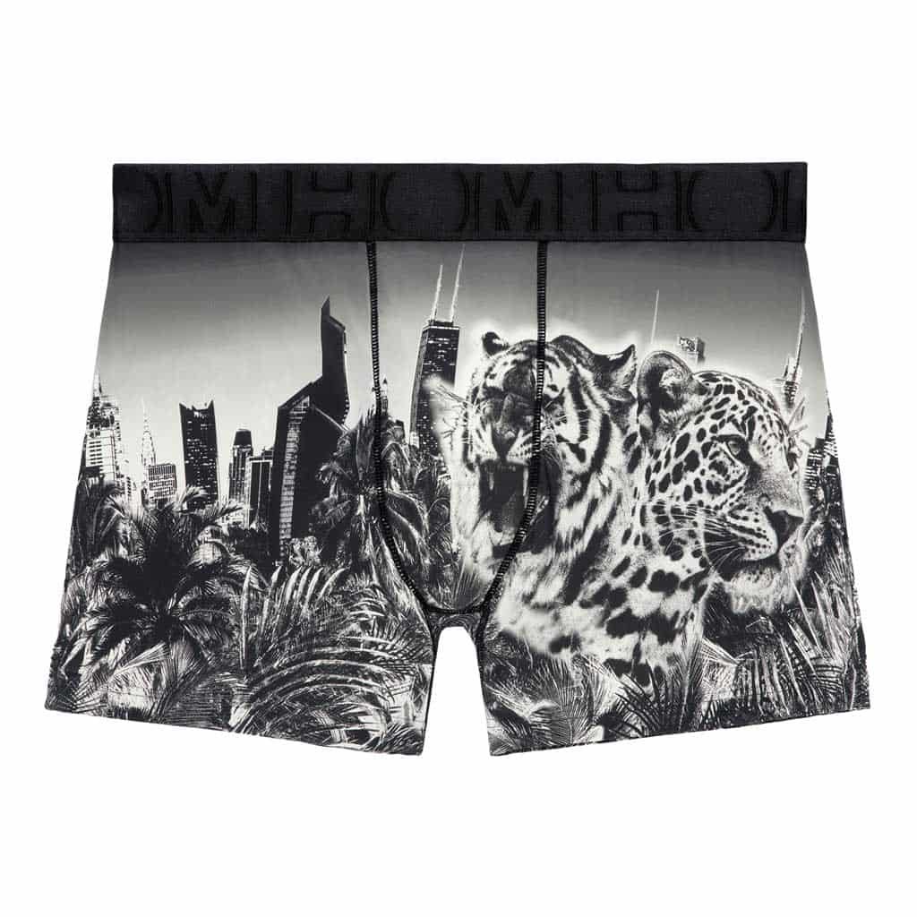 De Urban Jungle - Boxer Brief is gemaakt van een comfortabele microfiber en uitgevoerd met een prachtige stoere jungle print. De print is geplaatst zodat deze mooi overloopt. Deze unieke boxer in de HOM collectie is in beperkte oplage geproduceerd en mag daarom niet ontbreken in de ondergoedlade van elke man die iets speciaal voor zichzelf wil. Doordat de boxer is gemaakt van microfiber droogt deze snel en voelt deze zacht aan. Microfiber is daarnaast flexibel en past zich aan bij elke beweging van je lichaam voor optimaal draagplezier. De heupband is gemaakt van katoen en ligt comfortabel op de huid.