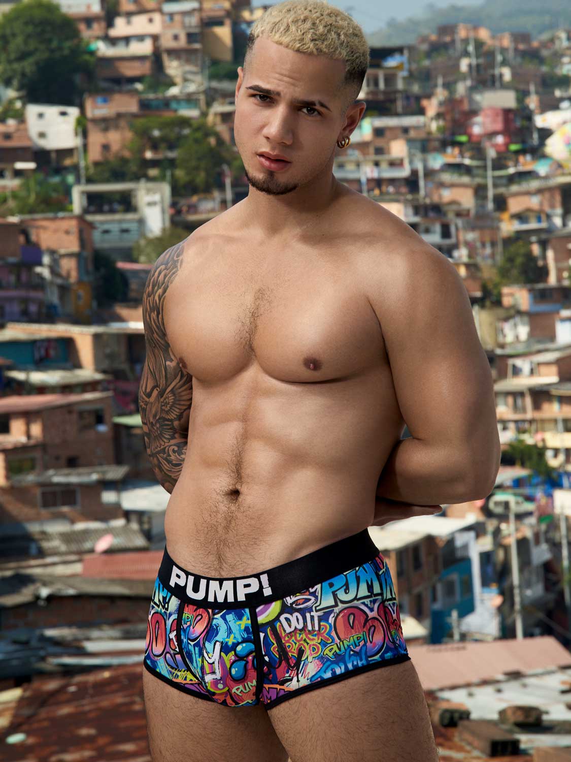 De Drip Boxer is een stoere boxer van PUMP! met een kleurrijke graffiti print gemaakt van een elastische polyester microfiber body rondom, voor optimaal comfort en flexibiliteit. De plaatsing van de graffiti-print is op elk boxer anders, waardoor elk exemplaar uniek is. De vochtafvoerende, duurzame microfiber body houdt je koel, terwijl de zwarte elastische tailleband, geaccentueerd met de klassieke PUMP! logo, zorgt voor een goede en comfortabele pasvorm.