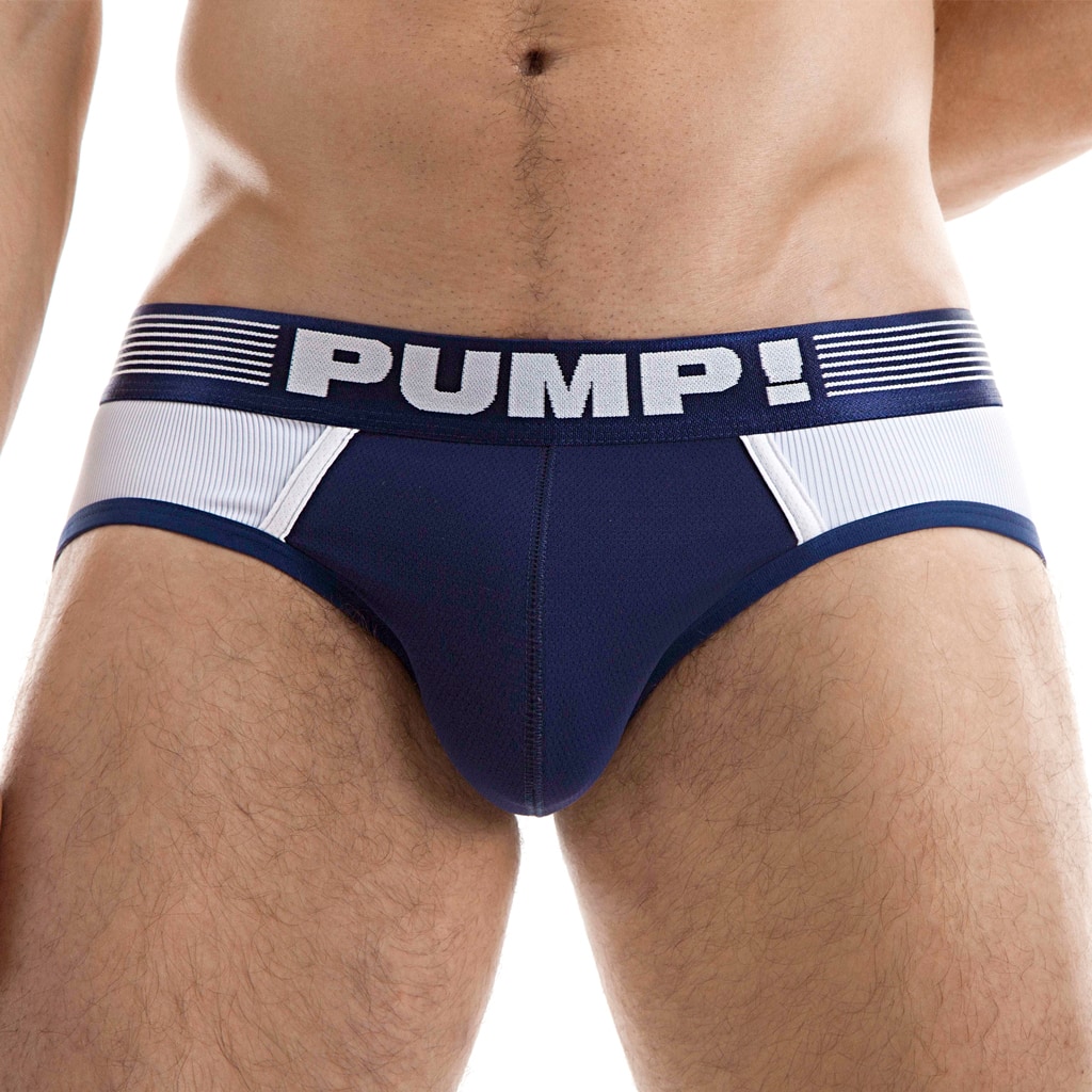 De Navy Ribbed Brief van PUMP! geeft je de ondersteuning waar je het nodig hebt en past zich perfect aan op je lichaam zodat jij je vrij kunt blijven bewegen. De slip heeft een stoere achterzijde gemaakt van rib stof in contrast tot de gewaagde mesh cup aan de voorzijde, die zorgt voor ventilatie waar je het nodig hebt. De Navy Ribbed Brief is zoals de naam al zegt uitgevoerd in marine blauw met wit.