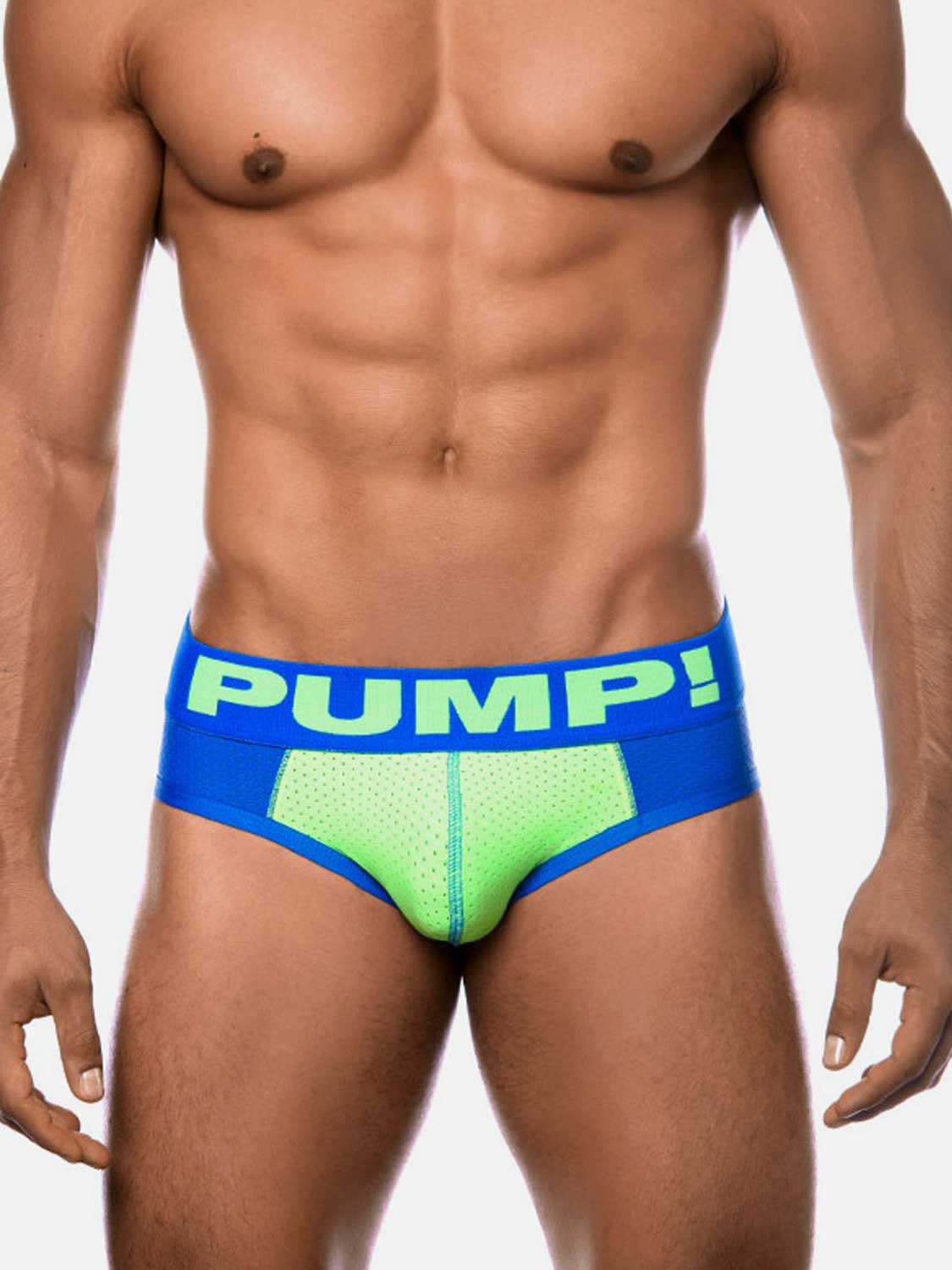 Met de Shockwave Brief van PUMP! in opvallende kleuren en een heupband van maar liefst 5 cm sta jij zeker in de spotlight. De slip zit comfortabel en is volledige gemaakt van een mesh gemaakt van katoen. Uitgevoerd in blauw met een appelgroene cup en letters op de heupband.
