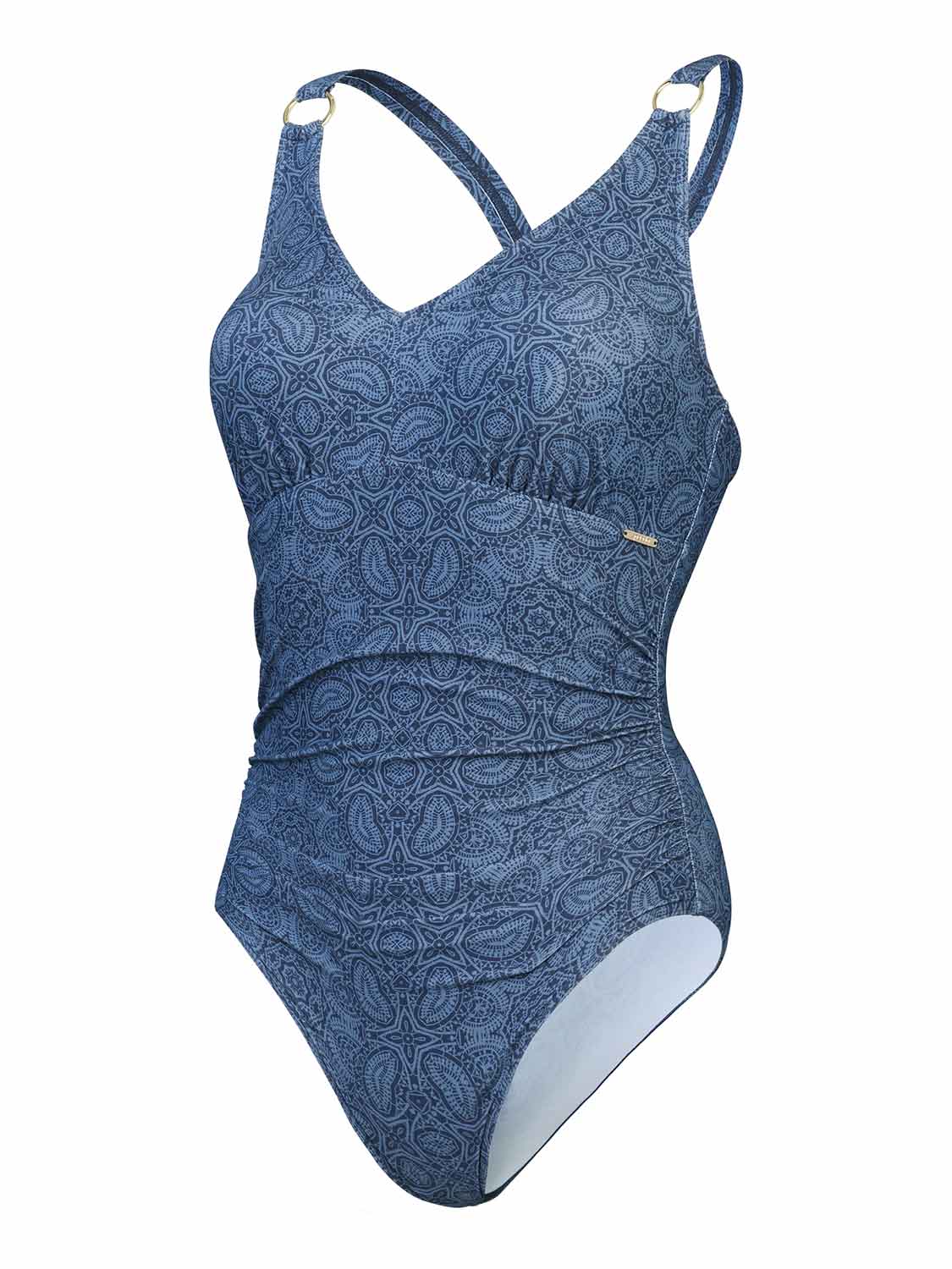 Geniet van een heerlijke vakantielook met dit shaping badbak. Het badpak is uitgevoerd met een V-hals voor een prachtige decolette. Door het shaping effect wordt de vrouwelijke vorm van het lichaam extra benadrukt en kun jij je zeker voelen. Het bapdak heeft uitneembare padding voor de borsten, voor wanneer je voldoende hebt aan de verweven borstondersteuning. Met de verstelbare schouderbandjes breng je de cup perfect op maat. Zo kun jij vol vertrouwen genieten van je vrije dagen aan het zwembad.