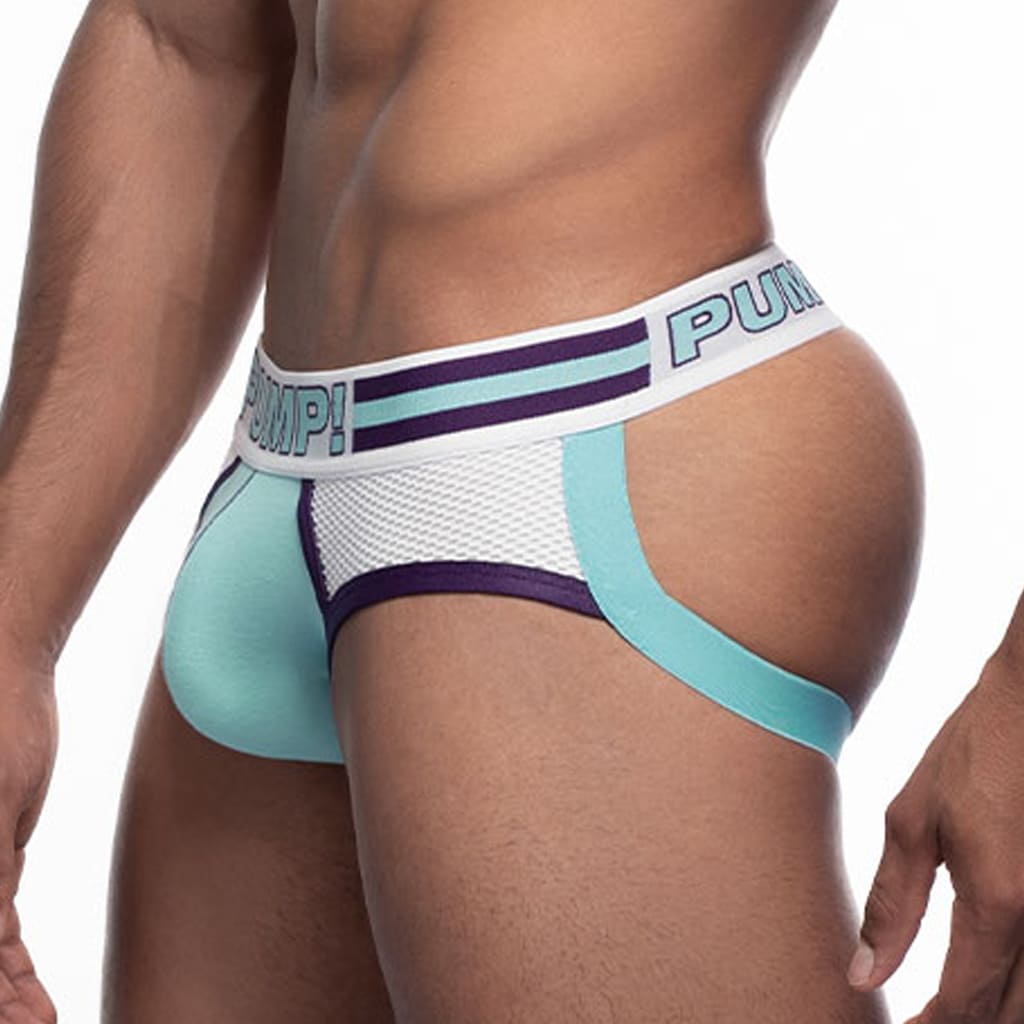 De Sportboy Jock is net zo avontuurlijk als alle andere jocks uit de PUMP-collectie, maar dan met een klassiek twist. De jock heeft een mooie retro look door het mesh voorpaneel wat aan de zijkant overgaat in zachte rekbare katoenen straps, die perfecte ondersteuning bieden aan de billen. De pouch is dubbel laags uitgevoerd zodat alles goed op zijn plek blijft zitten.