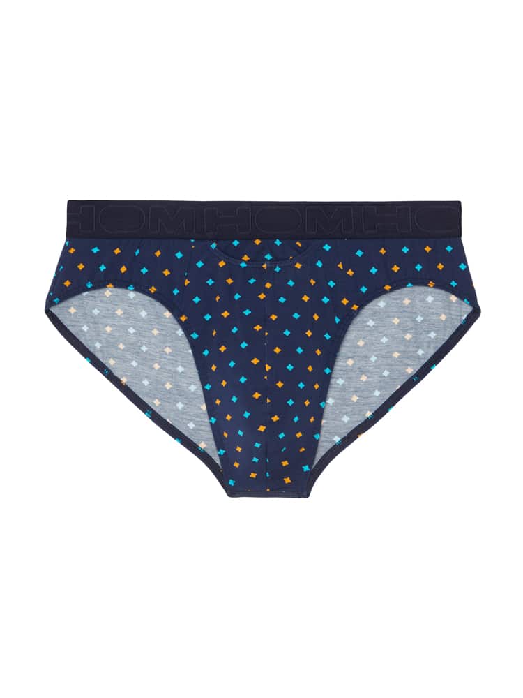 De Mougins - HO1 Mini Brief is een mini slip gemaakt van katoenmodal en uitgevoerd met de horizontale opening. De Mougins heeft een speelse all-over print op een marine blauwe achtergrond. Het katoenmodal voelt zacht aan en zorgt voor een perfecte pasvorm. De Mougins HO1 slip is geschikt voor iedere man die graag natuurlijke materialen draagt. Door de combinatie van modal met katoen heeft deze heren boxer bijzonder goede absorberende en ademende eigenschappen en is de stof bij normaal gebruik bestendig tegen krimpen en wrijving. De heren slip heeft een elastische zachte heupband en is uitgevoerd met het HOM logo.