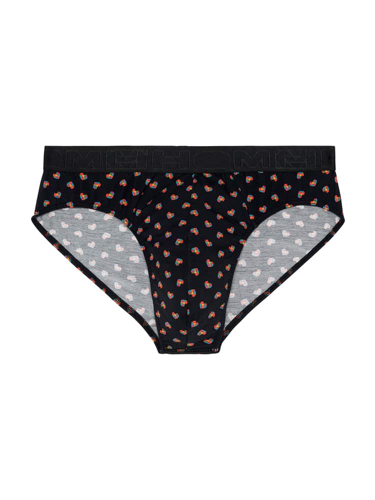 De Romeo - Mini Brief draagt je een warm hart toe. De heren slip is gemaakt van een zachte comfortabele katoen modal en uitgevoerd met een print met kleurrijke hartjes. De Romeo is geschikt voor iedere man die graag natuurlijke stoffen draagt. Door de combinatie van modal met katoen heeft deze heren boxer bijzonder goede absorberende en ademende eigenschappen en is de stof bij normaal gebruik bestendig tegen krimpen en wrijving. De Romeo heeft een comfortabele zachte heupband uitgevoerd met het HOM logo in ton-sur-ton.