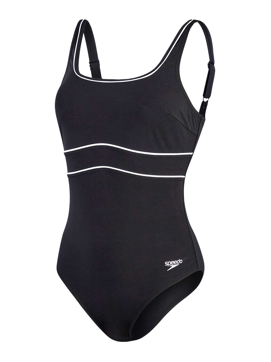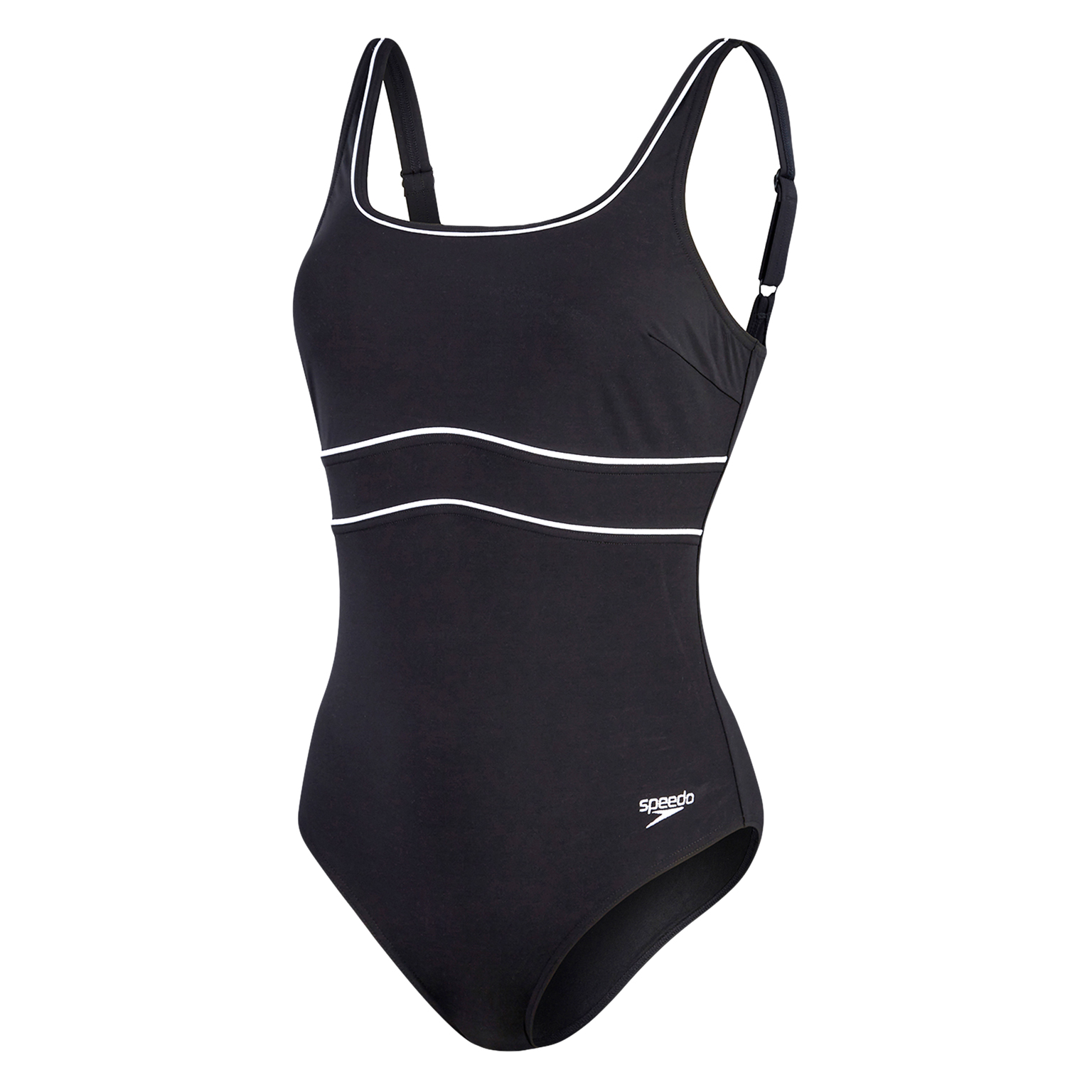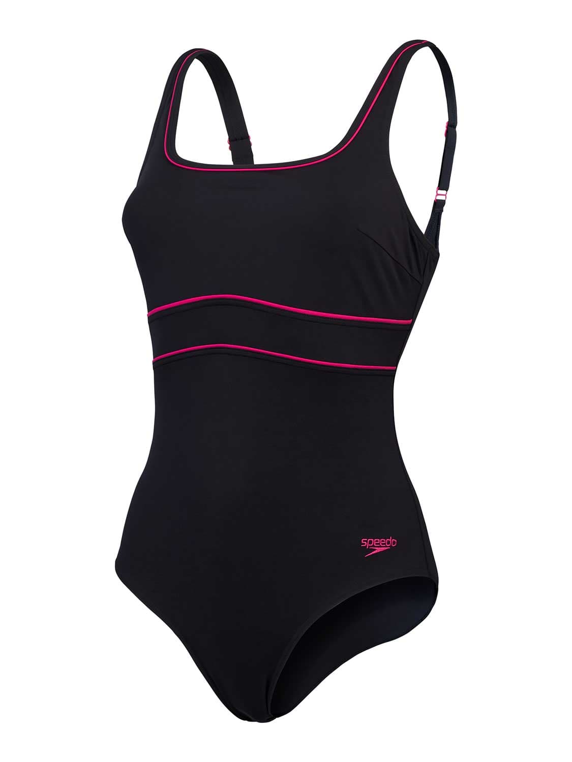 De Contour Eclipse is een sculpture badpak uit de Shaping collectie van Speedo en de vervanger van de countourlustre. De sculpture stof sluit perfect aan op het lichaam en accentueert de vrouwelijke rondingen voor een mooi gestroomlijnd figuur, zonder in te leveren op draagcomfort. Het badpak biedt een medium borstondersteuning verweven in de stof en heeft een all-over shaping effect. De verstelbare schouderbandjes zorgen ervoor dat je het badpak perfect op maat kunt brengen. De Contoure Eclipse is uitgevoerd met een rechte neklijn die nog voldoende ruimte biedt voor de dame die boven iets breder is of een grotere cup nodig heeft. De sculpture stof gaat tot 2x langer mee dan standaard badkleding wanneer je in chloor zwemt, waardoor je langer van je badpak kunt genieten.