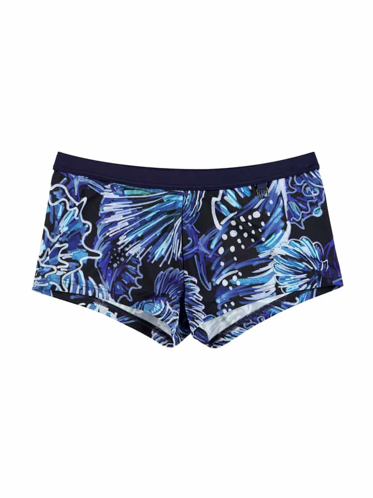 Het Ecume Swim Short is een strakke zwemboxer met een donkerblauwe zeeschelp print. De heupband heeft een inwendig trekkoord om de zwemboxer perfect op maat te brengen. Het Ecume Swim short is geschikt voor op het strand als in het zwembad. Linksvoor onder de heupband bevindt zich een bedeltje met het HOM logo.