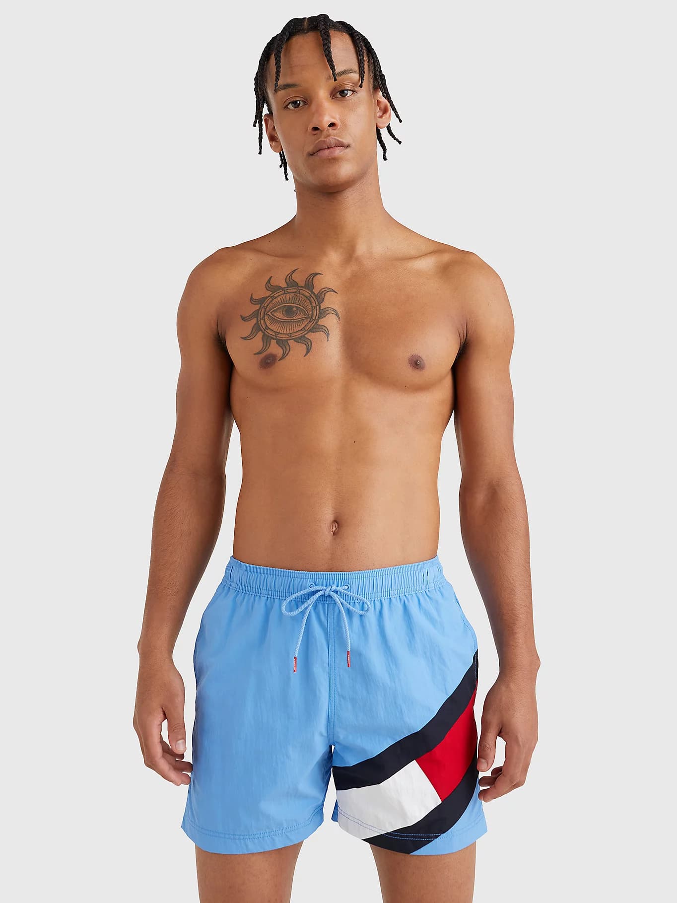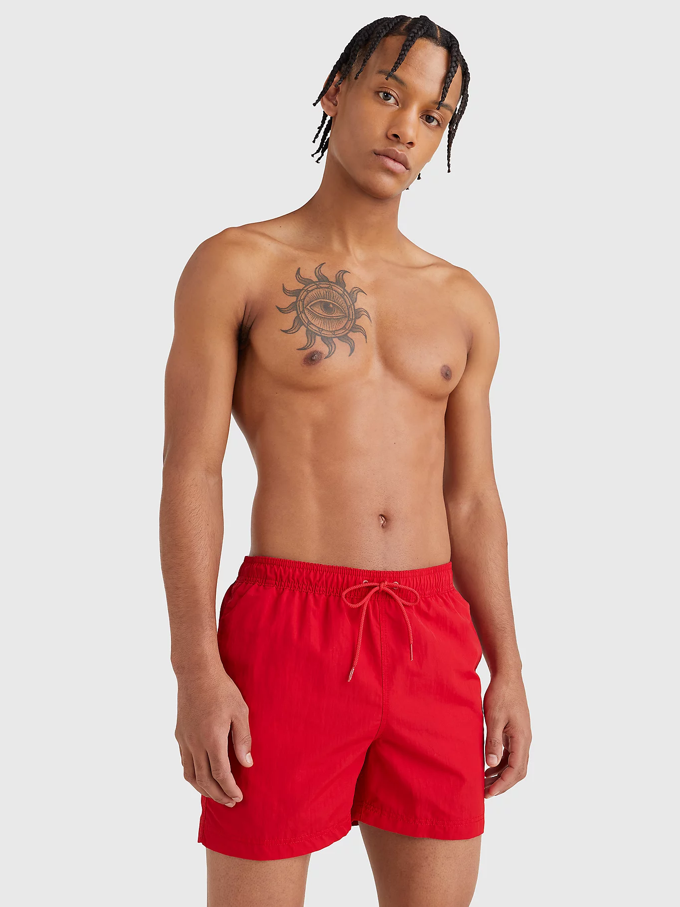 Zwemshort van Tommy Hilfiger met een gemiddelde lengte uitgevoerd in een unikleur. Het zwemshort is gemaakt van gerecyclede nylon en heeft een trekkoord in de heuplijn voor de perfecte fit. Aan de linker en rechterzijde vind je steekzakken in de zoom met als finishing touch een achterzak.