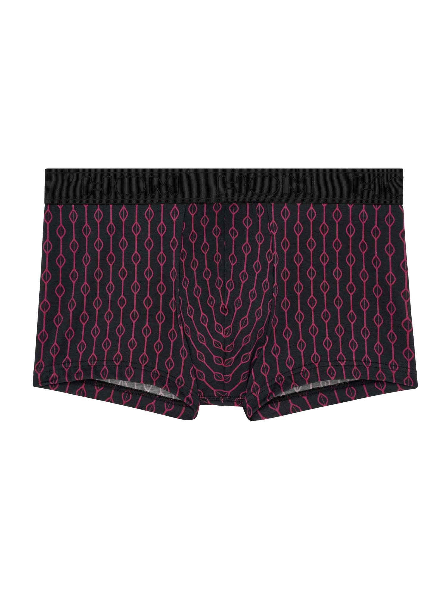 De Dunes Trunk is geïnspireerd op de retro elegantie van Las Vegas en heeft een verfijnd geometrisch design in 50’s stijl. Bordeauxkleurige vormen op diepzwart roepen de ingetogen glamour op van het legendarische Dunes hotel. De korte trunksnit zit hoog op het bovenbeen voor een moderne, strakke look en veel bewegingsvrijheid. Afgewerkt met een zachte HOM logo tailleband en een discreet elastisch paneel in de beenzoom, zodat de trunk de hele dag netjes op zijn plek blijft.