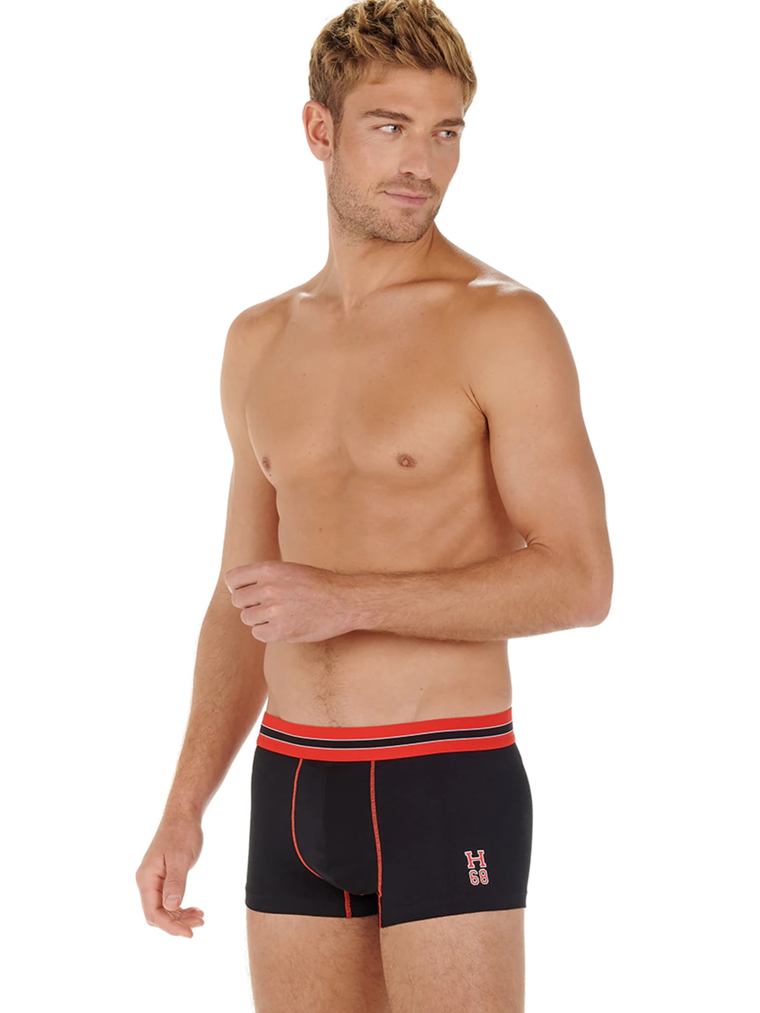 De HOMrun - Trunk is de sport boxer voor dit seizoen, gemaakt van een nieuwe katoen stofsamenstelling wat de groei van bacteriën tegengaat voor een betere hygiëne. De HOMrun heeft een opvallende retrolook in felle kleuren met lijnen langs de pouch en zijkant en over de elastische heupband. De Tie Break is een boxershort met korte pijpjes gemaakt om te dragen tijdens elke activiteit. Links voor op het been is een HOM-embleem geplaatst.