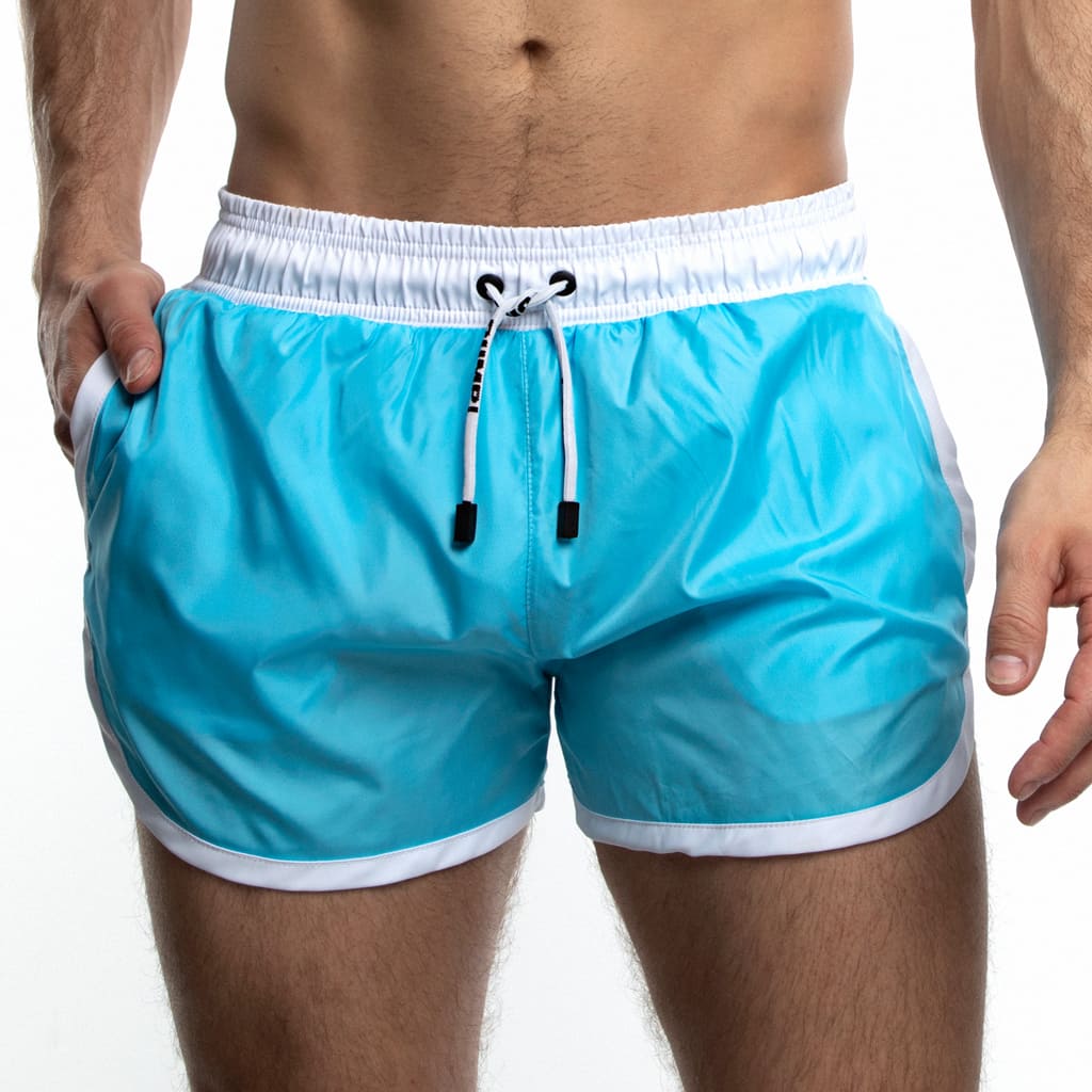 Watershort van PUMP! geschikt voor verschillende doeleinden. Om heerlijk in te zwemmen of gewoon voor een warme zonnige dag. Het short heeft een elastische heupband met een trekkoord en is uitgevoerd met een comfortabele elastische binnenbroek gemaakt van mesh voor de perfecte fit. Het short biedt UPF 50 bescherming tegen de zon en droogt snel. Doordat het short is gemaakt van een nieuw soort microfiber van polyester voelt deze comfortabel en flexibel aan. Door de witte biesjes en heupband ontstaat een fijn contrast waardoor de shorts goed staan op elke huid. Beschikbaar in de kleuren zwart, koraal en aqua.